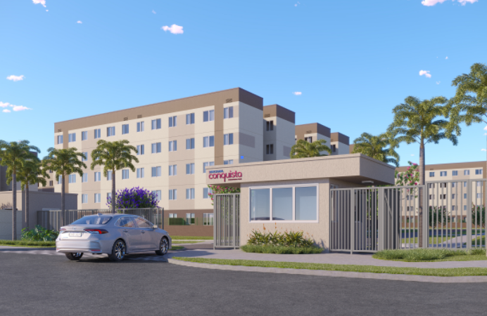 26 blocos com 520 unidades, 5 pavimentos cada. Áreas de lazer completas: piscinas, quadras, salão de festas, playground e muito mais.